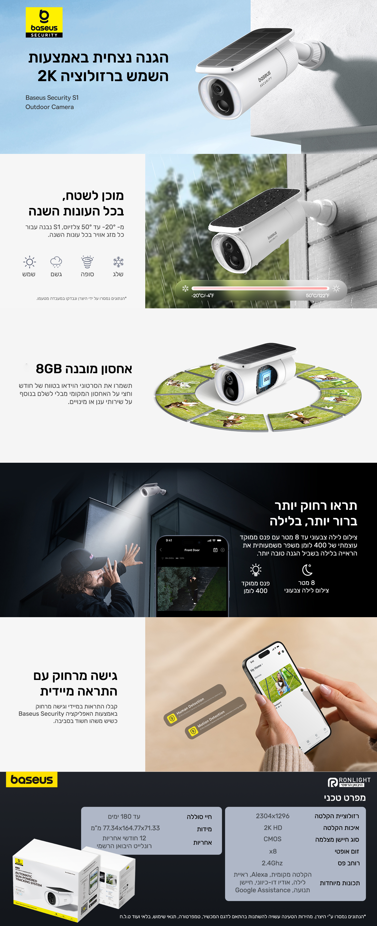 - מערכת אבטחה המכילה 2 מצלמות אבטחה עם טעינה סולארית ותחנת גיבוי ביתית