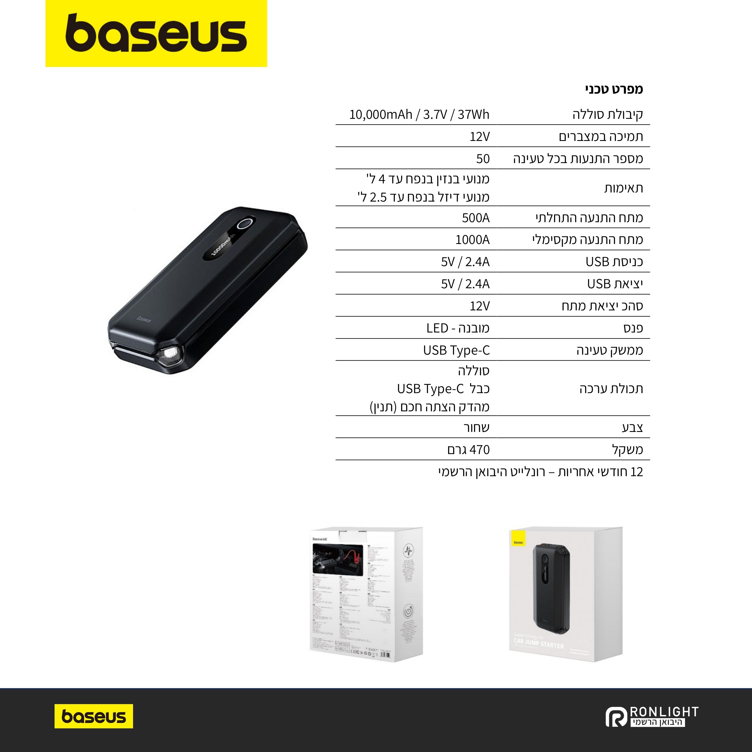 - אחריות לשנה - רונלייט היבואן הרשמי